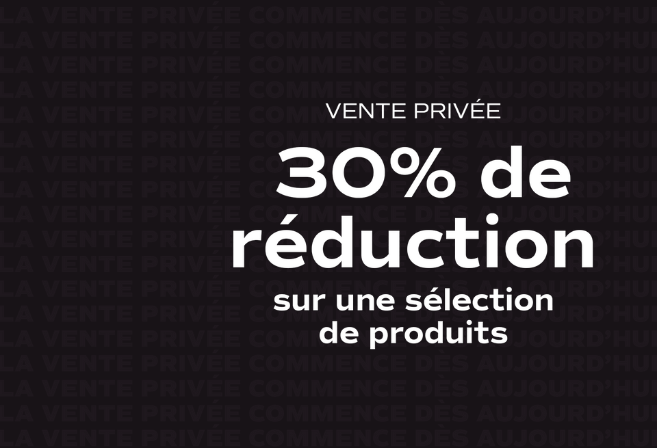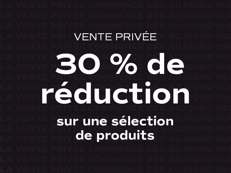 Pendant seulement trois jours, profitez de 30 % de réduction sur une sélection de produits dans le cadre de notre vente privée.